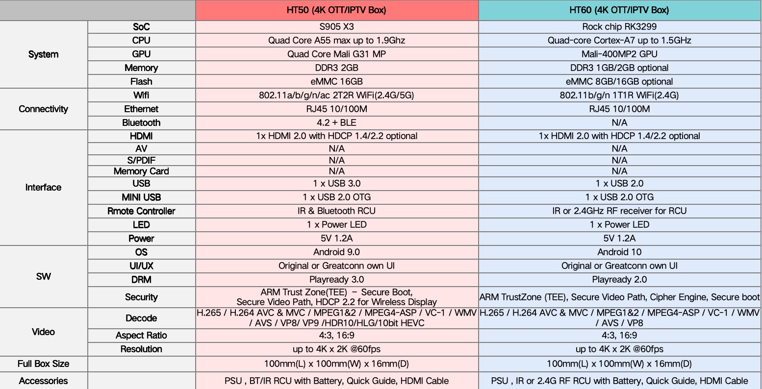 IPTV/OTT安卓智能机顶盒产品-HT50 & HT60
